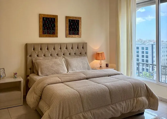 Located 15 minutes by car from the L-shaped Citadel Hill, the spacious Exquisite & Inviting 2 Bedroom 2 Bath Balcony Fast Internet Amman apartment overlooks the city.